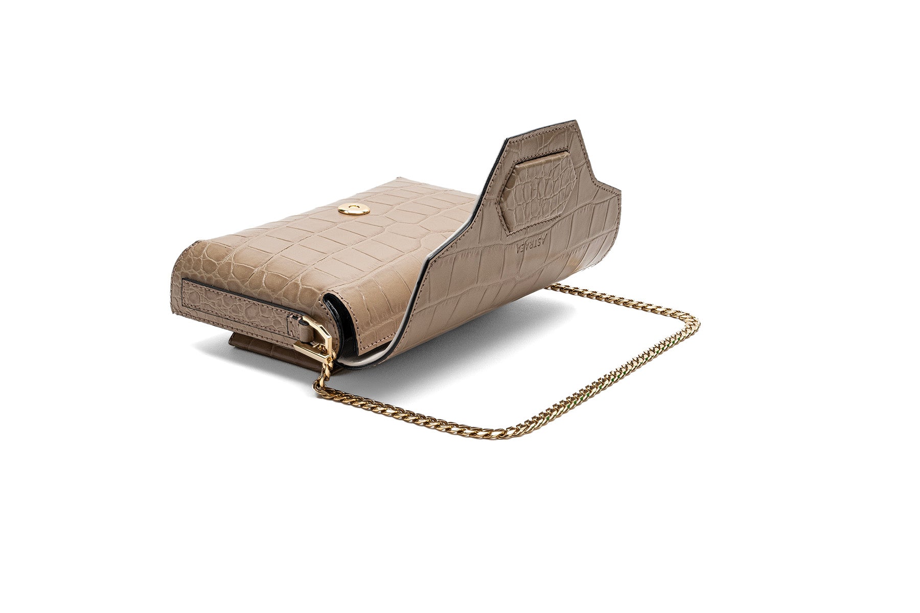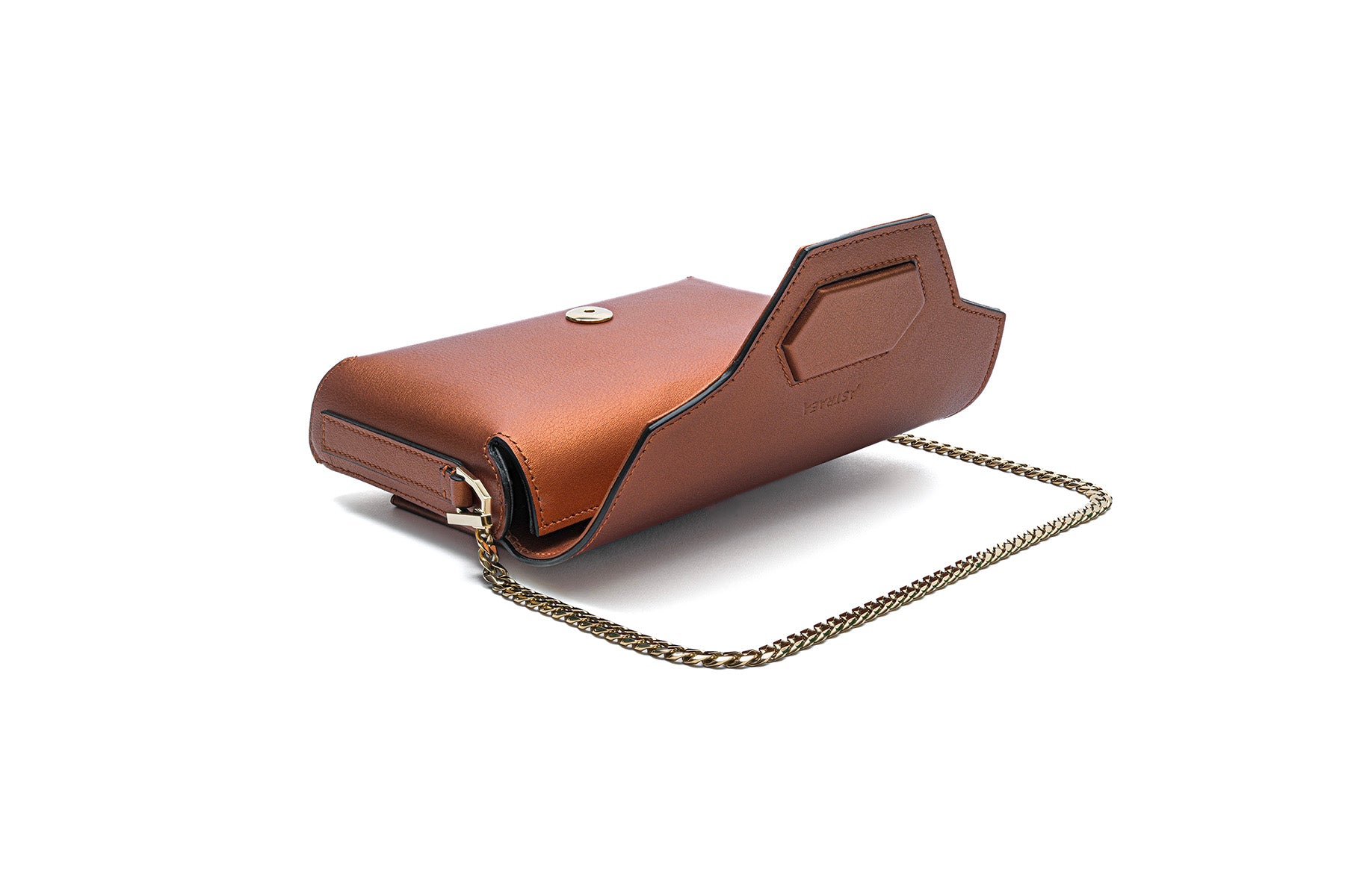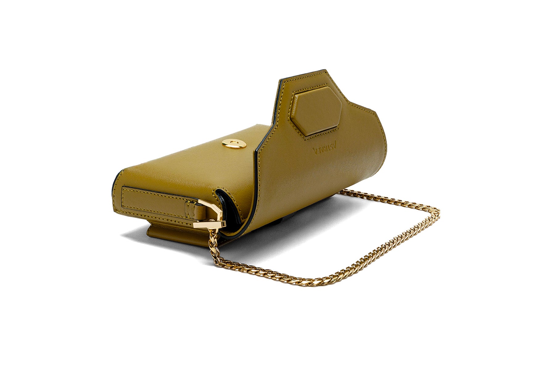 The Harmonia clutch is crafted from one uninterrupted piece of leather — a rare construction that defines its iconic silhouette. This singular cut creates a dialogue of contrasts: the flap’s precise geometric lines meet the body’s soft, rounded curves.