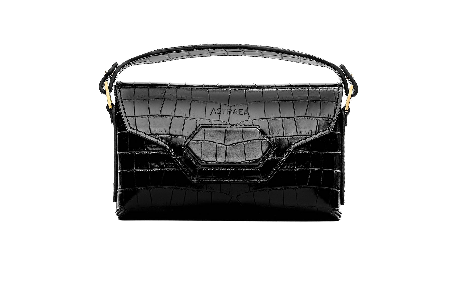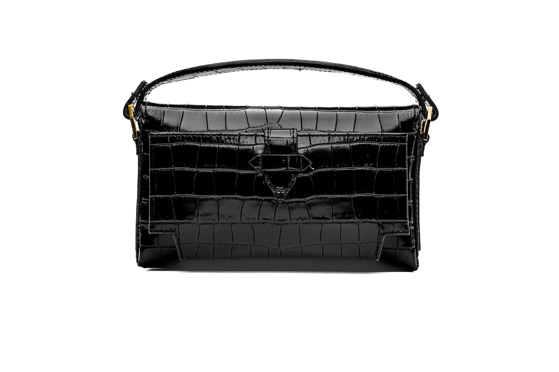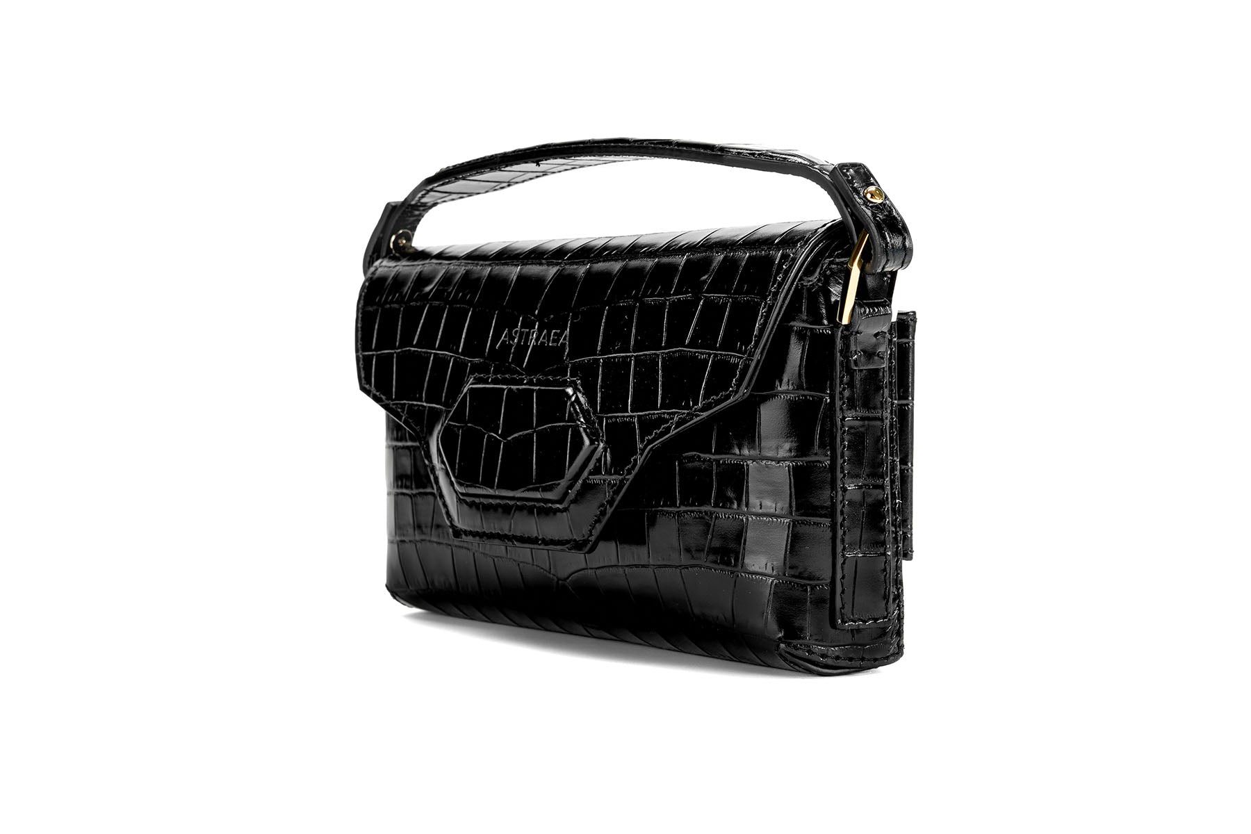 Harmonia Pochette - Shiny Stamped Crocodile Obsidian