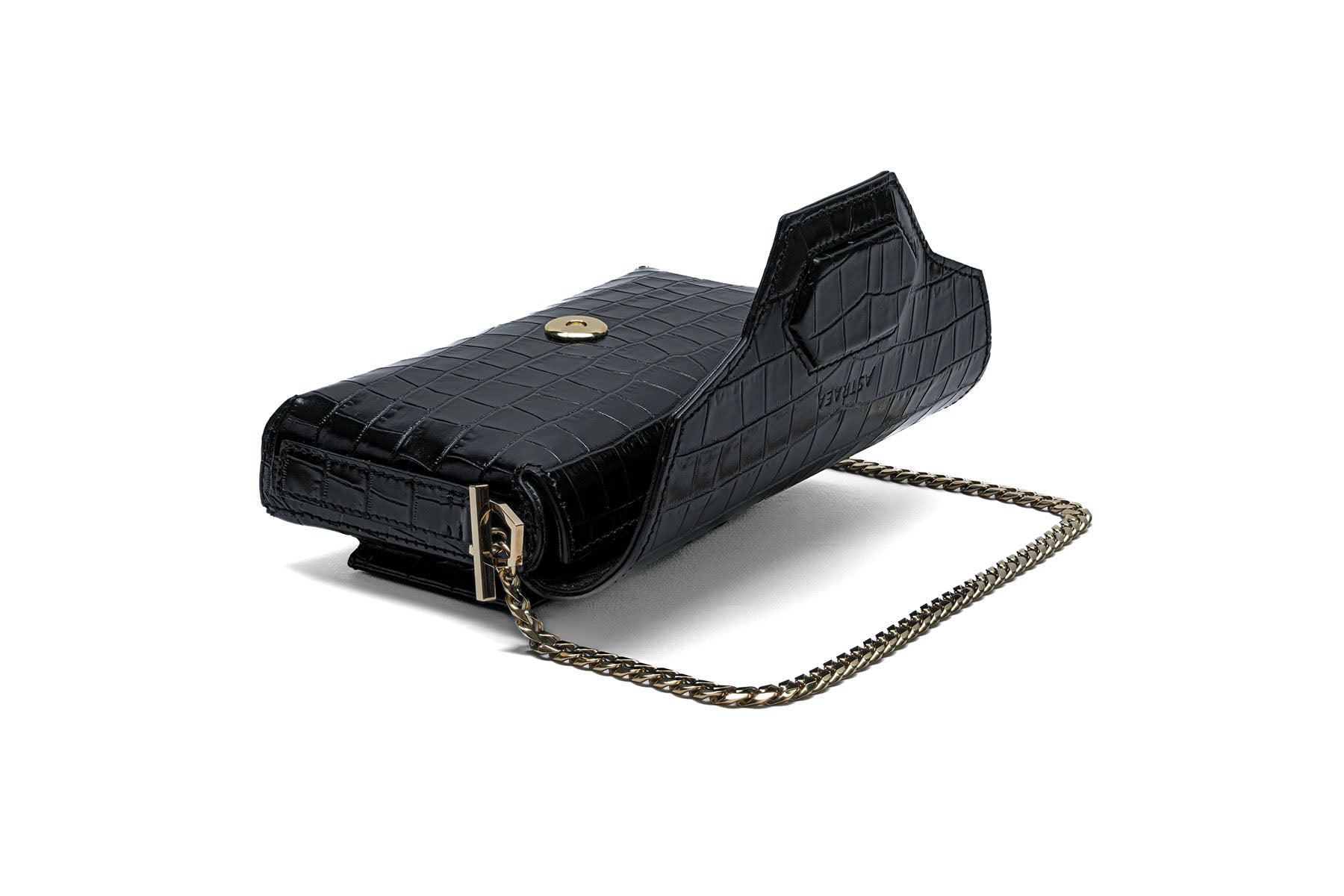 - Detachable gold-finish chain strap